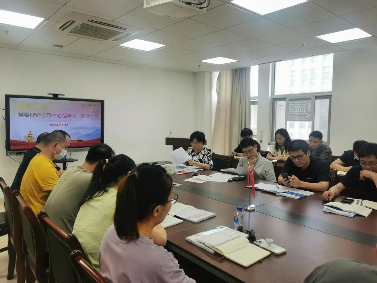 5月23日下午,色小说 党委在东区教学综合楼A1505召开党委理论学习中心组学习(扩大)会议。院党委书记于晓舟主持会议,学院党委理论学习中心组成员、教工党支部书记、学生党支部书记等参加学习。