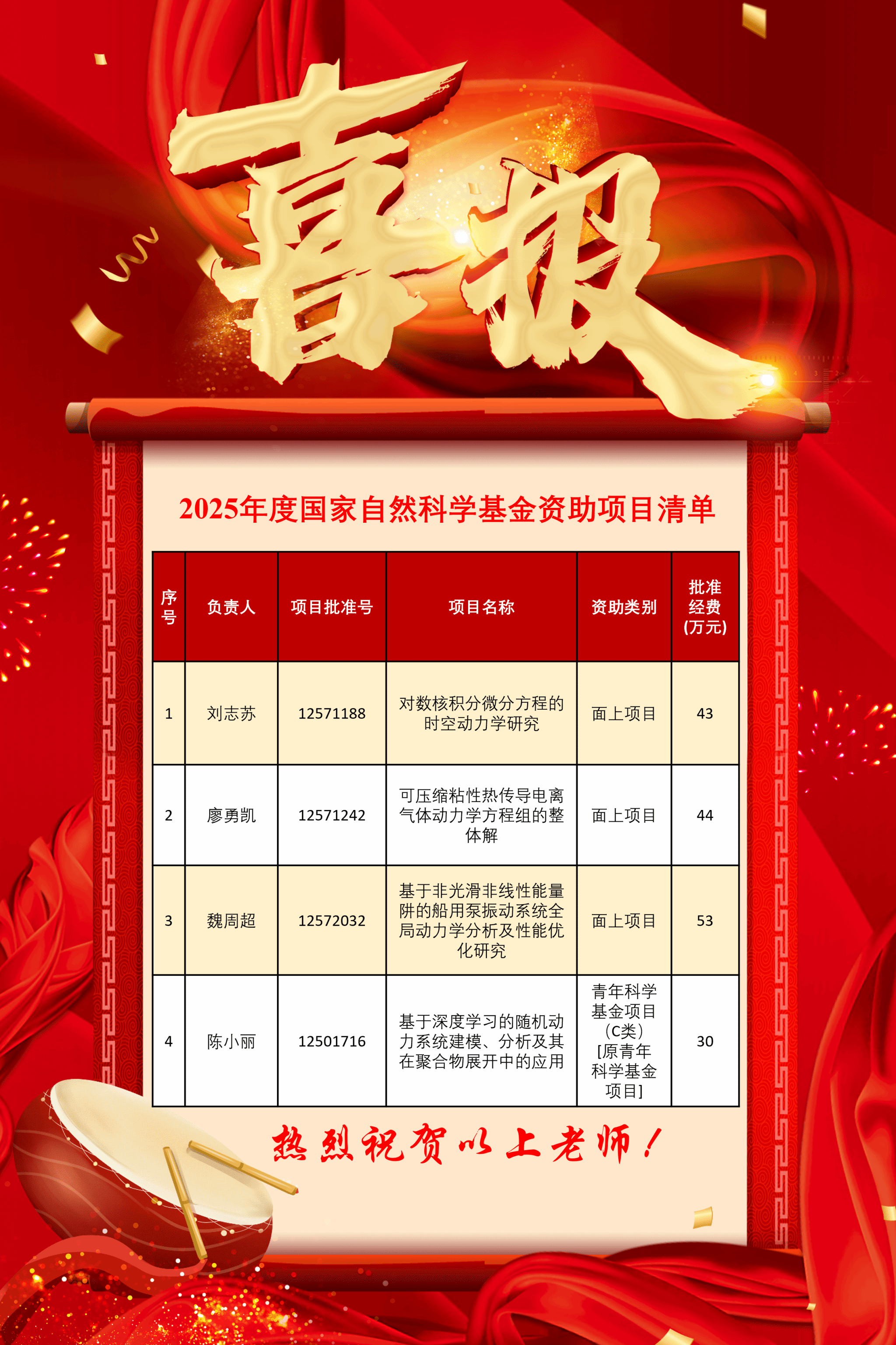2025年8月27日,国家自然科学基金委员会公布了2025年集中接收期项目评审结果,色小说 共有4项项目获得立项资助,其中面上项目3项、青年科学基金项目(C类)[原青年科学基金项目] 1项。