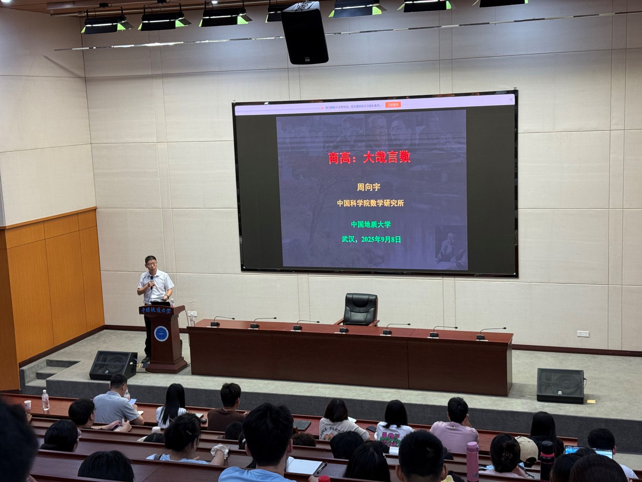 2025年9月8日,应色小说 院长魏周超教授的邀请,中国科学院院士、发展中国家科学院院士、中国科学院数学与系统科学研究院周向宇研究员做客色小说 “名家论坛”,在南望山校区东区教学综合楼A0116会议室为色小说 师生带来了一场题为“商高——大哉言数”的精彩学术报告。本次报告会由色小说 魏周超教授主持。2025级研究生、本科生百余人参加此次报告。