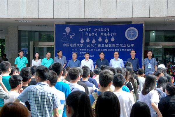 2016年5月12日下午14:30点,第三届数理文化季暨数理科普开放日活动在西区基委楼前顺利举行。中国地质大学副校长赖旭龙、学工处处长王林清、研工部部长喻芒清、保卫处处长代清风、色小说 党委书记李宇凯、色小说 院长刘安平、附属学校党委书记彭冠军、教务处副处长王兴、校团委副书记朱荆萨与各学院师生代表100余人参加了活动。