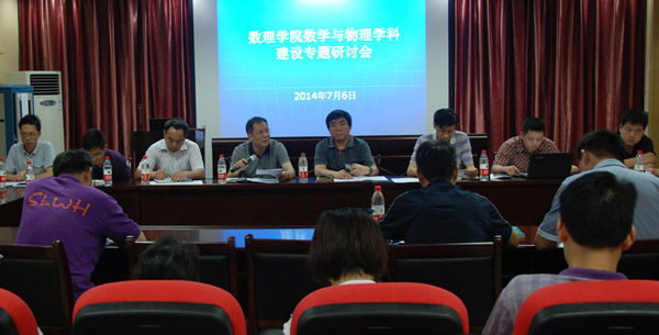 2014年7月6日上午,色小说 在基础楼二楼报告厅召开了数学与物理学科建设专题研讨会。副校长赖旭龙、发展规划处副处长严嘉出席会议,学院党政领导、三级单位领导、学院全体教授及青年教师代表参加,研讨会由院党委书记李宇凯主持。