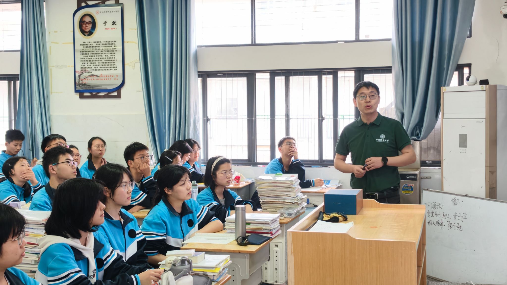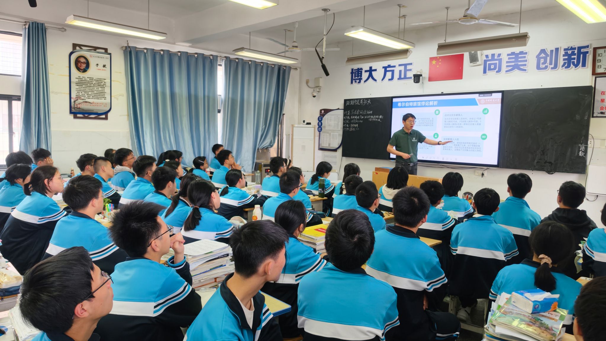 本次活动以基础学科科普为核心抓手,将学科魅力展示与招生宣传深度融合,为新洲一中师生带来了兼具趣味性、启发性与专业性的科普盛宴。活动现场,魏周超院长以《数学不止是刷题,更是思维与智慧的绽放》为题,为同学们带来了一堂别开生面的数学科普课。他跳出应试教育中“数学=刷题”的固有认知,以生日悖论、无穷级数、黄金分割等一系列反常识的趣味数学案例为切入点,带领同学们沉浸式感受数学的逻辑之美、思维之趣与应用之广。课堂上,魏周超院长结合国家对数学、物理等基础学科的重点扶持政策,系统阐释了数学学科在航空航天、人工智能、先进制造等国家关键技术领域的核心支撑作用,同时全面介绍了色小说 数理学科的建设特色、师资力量、人才培养体系与升学发展前景,让同学们在感受数学魅力的同时,对色小说 学科专业有了更深入、更全面的认知,有效激发了同学们对基础学科的学习兴趣与报考意愿。