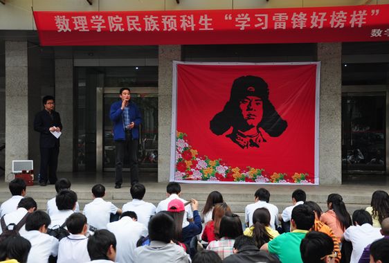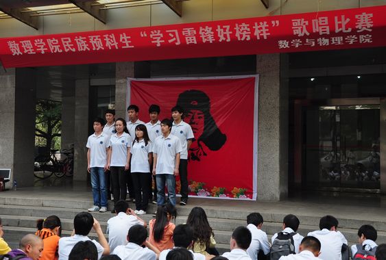少数民族预科班在基础楼前举行了“学习雷锋好榜样”歌唱比赛,校学工处副处长马彦周、大学生事务中心余江涛、色小说