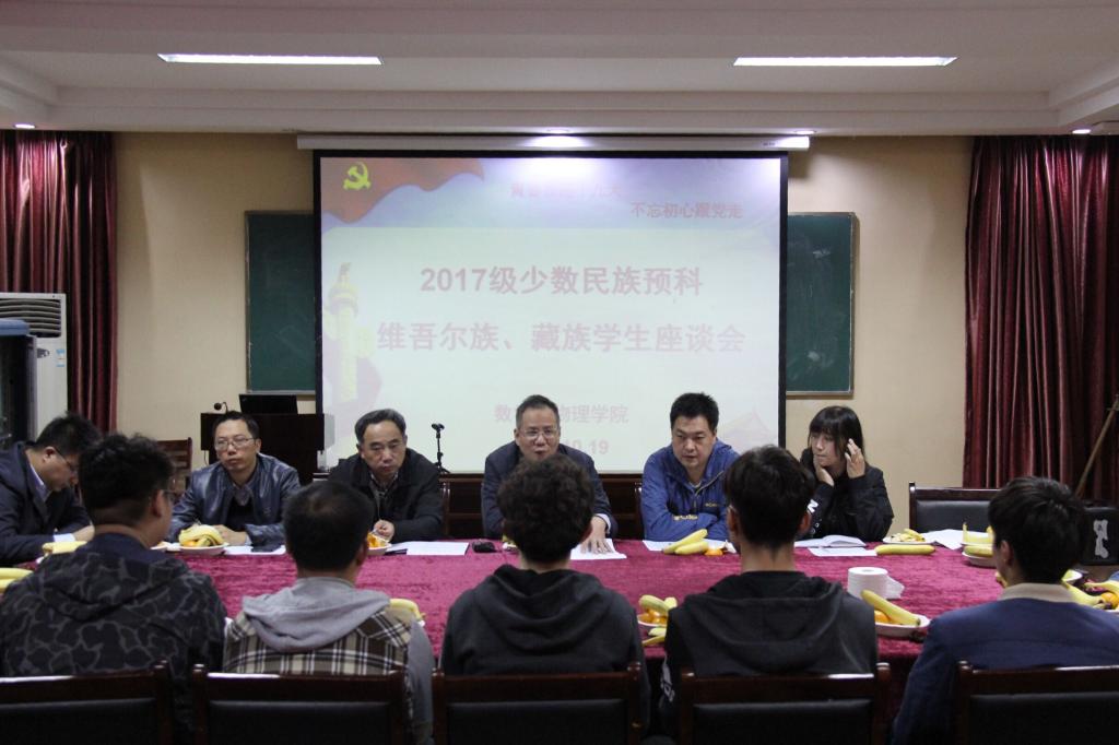 10月19日下午3:00,正值十九大隆重召开的第二天,色小说 组织少数民族预科维吾尔族、藏族学生在数理楼212会议室召开座谈会。参加座谈的领导老师有院党委书记李宇凯、副院长程永进、副院长黄刚,学工组的各位辅导员老师以及十五名预科生参会。座谈会由院党委副书记李杰主持。