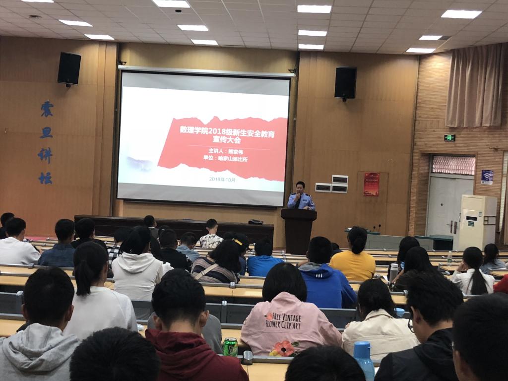 10月13日下午,色小说 2018级新生安全教育大会在教三楼109教室举行,喻家山派出所熊家伟警官为学生讲授安全知识。2018级预科生、本科生、研究生共计300余人参加会议,会议由辅导员托乎尼牙孜主持。