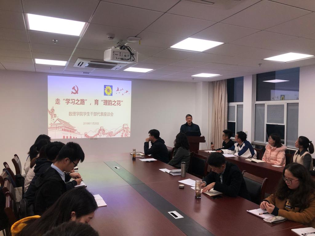 11月20日下午,色小说 学生干部代表座谈会在教学综合楼A1505会议室召开。院党委书记吴太山、院党委副书记徐超和学工组全体辅导员与学生干部代表面对面进行交流,认真听取他们在学生组织建设、思想建设、学风建设、信息平台建设、活动保障支持等方面的建议和想法。座谈会共48位学生代表参会,院团委书记钟苹主持座谈会。