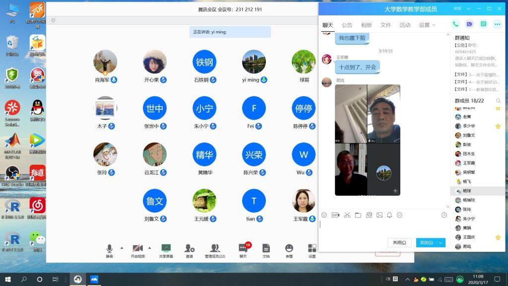 会议围绕以下议题进行了交流讨论:首先,学习教育部《关于在疫情防控期间做好普通高等学校在线教学组织与管理工作的指导意见》,湖北省教育厅《关于做好疫情防控期间高校教学工作的通知》和学校教务处等一系列文件精神;其次,各任课教师分别汇报自己开学一个多月以来的在线教学现状、教学进展,分享线上教学所取得的经验和面临的问题,后续改进措施;各毕业论文指导教师汇报本科毕业论文进展和完成情况;然后,大家进一步探讨了疫情防控期间切实可行的课程考核方案,做好课程考核形式和详细的成绩评定预案。