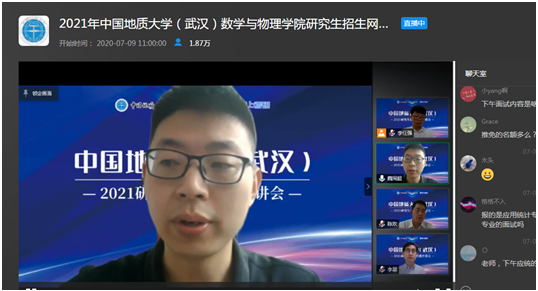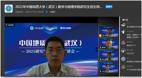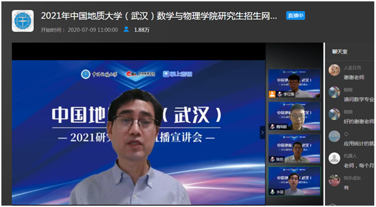 7月9日上午,色小说 副院长魏周超、物理系主任陈欢、信息与计算科学系主任李星通过中国教学在线网络直播平台,向同学们介绍了色小说 数学、物理、应用统计三个研究生招生学科的基本情况,并回答了同学们提出的各种问题。据统计,直播结束时,有大约1.8万余人参与了本次直播活动。