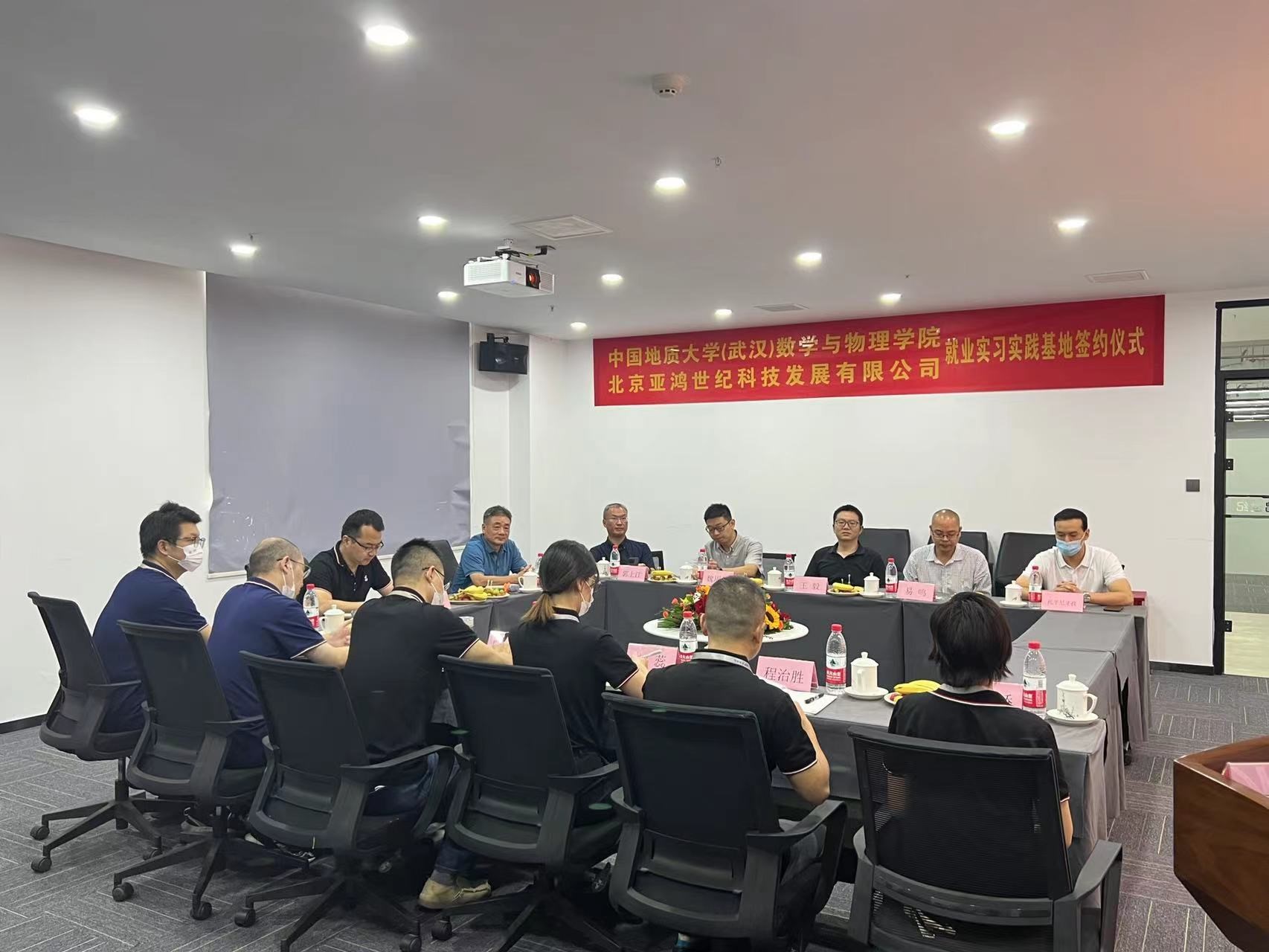 为推进产学研合作,深化本科人才培养模式改革,提高数学类本科人才培养质量,落实访企拓岗促就业专项行动工作要求,加强校企合作,9月30日,色小说 与北京亚鸿世纪科技发展有限公司(以下简称“亚鸿公司”)签署色小说 色小说 就业实践基地协议。学院书记吴太山、学院院长郭上江、副院长魏周超、数学与应用数学系主任王毅、信息与计算科学系主任易鸣、辅导员托乎尼牙孜与北京亚鸿世纪科技发展有限公司总经理兼党支部书记林飞、数据智能分析部总监熊骁、信安产品研发部总监刘俊、产品交付部副总监陈凌浩、启航部副总监刘蕊、数安产品研发部副总监程治胜、研发管理部副经理代春娇以及人力资源部经理李莉等部门负责人座谈交流,共同见证签约。