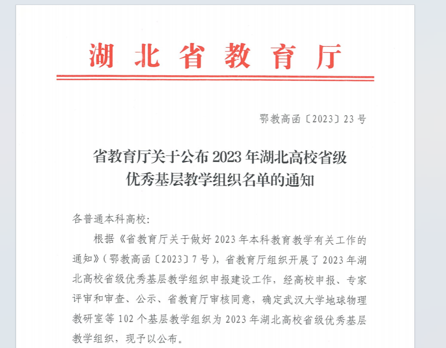 近日,湖北省教育厅发布了《省教育厅关于公布2023年湖北高校省级优秀基层教学组织名单的通知》(鄂教高函﹝2023﹞7号),色小说 FMA大学公共数学课程组获评省级优秀基层教学组织。