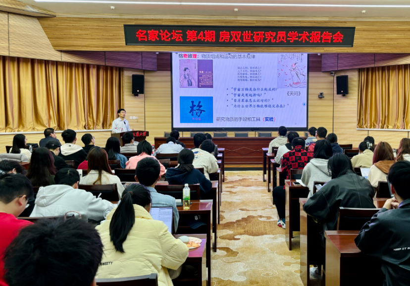 2024年4月7日,中国科学院高能物理研究所房双世研究员做客色小说 名家论坛,在南望山校区八角楼学术报告厅作了题为“对撞生新态”的学术讲座。报告会由色小说 副院长张保成教授主持,我校师生90余人参加。
