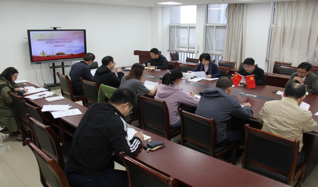 4月30日下午,色小说 党委在东区教学综合楼A1505召开党委理论学习中心组(扩大)学习会议暨党纪学习教育专题读书班。院党委书记于晓舟主持会议,学院党委理论学习中心组成员、教工党支部书记、学生党支部书记代表等参加学习。