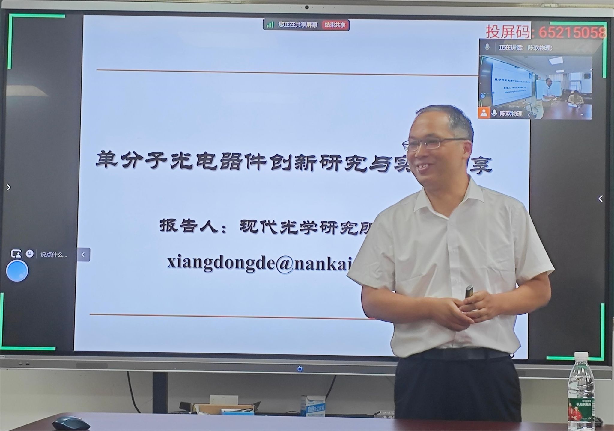 会上,院长魏周超代表学院领导班子向莅临学院指导交流的校友专家们表示热烈欢迎,并向校友介绍学院发展情况。他表示,学院始终高度重视物理学科发展建设,期望与会专家学者能够在此次会议的交流研讨中,共同为建强、做优物理学科贡献智慧与力量。天津市微尺度光学信息技术科学重点实验室主任、南开大学现代光学研究所副所长向东教授,武汉大学物理学院毛力教授,中国科学院精密测量科学与技术创新研究院康会鹏研究员等三位国家级青年人才入选者分别做了大会报告,并围绕量子物理前沿进展开展了学术交流。物理学科优秀青年人才和在读博士生分别就近期所取得的研究成果进行学术报告。此外,物理学科粒子物理与核物理团队、光学与光电子技术团队、材料与计算物理团队、以及引力与天体物理等四个团队负责人分别介绍了团队人员构成、研究方向、研究特色以及相关研究成果等,并与专家学者进行深入探讨交流。随后,与会专家学者对物理学科专业实验室进行参观,依次走进计算物理实验室、材料实验室、探测实验室和光学实验室等考察学习。