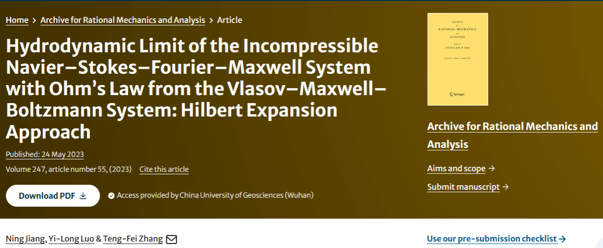 Archive for Rational Mechanics and Analysis杂志创刊于1957年,由Springer出版,主要出版流体力学、数学物理偏微分方程、力学系统的稳定性和控制等领域中的重要进展,是国际数学界公认的应用数学国际顶尖学术期刊,在学术界享有极高的声誉。
