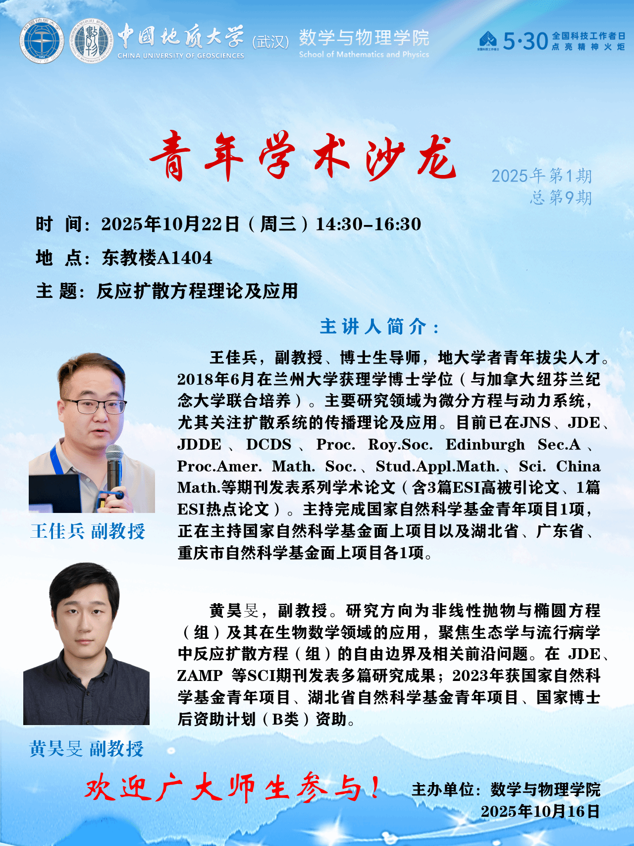 2025年10月22日青年学术沙龙第9期:反应扩散方程理论及应用