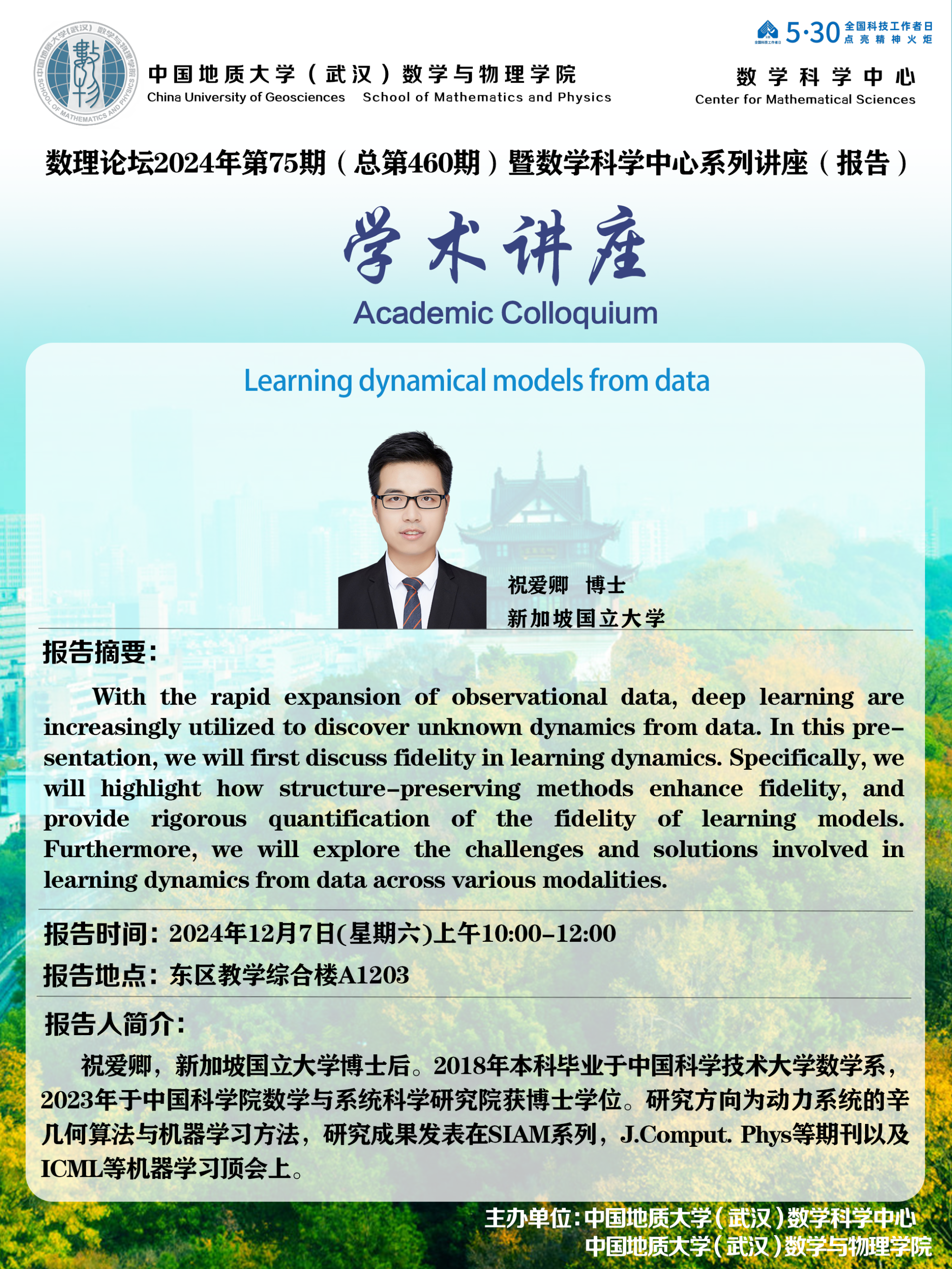 2024年12月7日祝爱卿博士学术讲座:Learning dynamical models from data