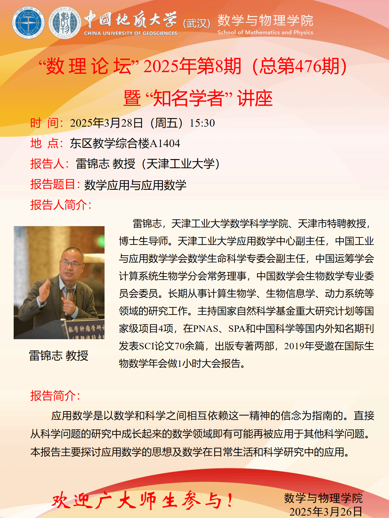2025年3月28日雷锦志教授学术讲座:数学应用与应用数学