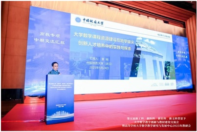 会议期间,高等学校大学数学教学研究与发展中心主任李继成教授解读了2024年度工作总结及2025年立项指南,鼓励高校围绕“AI + 数学教育”“新工科数学课程群建设”等方向开展联合攻关。在分组讨论环节,色小说 黄刚教授做了“大学数学课程资源建设在地学拔尖创新人才培养中的实践与探索”的项目汇报,介绍了我校大学数学与地学交叉教学团队围绕地球科学与大学数学课程的融合,构建知识点对应的应用体系,形成具有代表性的课堂教学案例,组织编写具有新工科特色的系列教材、推动课程资源数字化建设,积极开展教学实践与探索,提升学生交叉学科素养与应用能力。报告受到了与会同行的高度赞扬。
