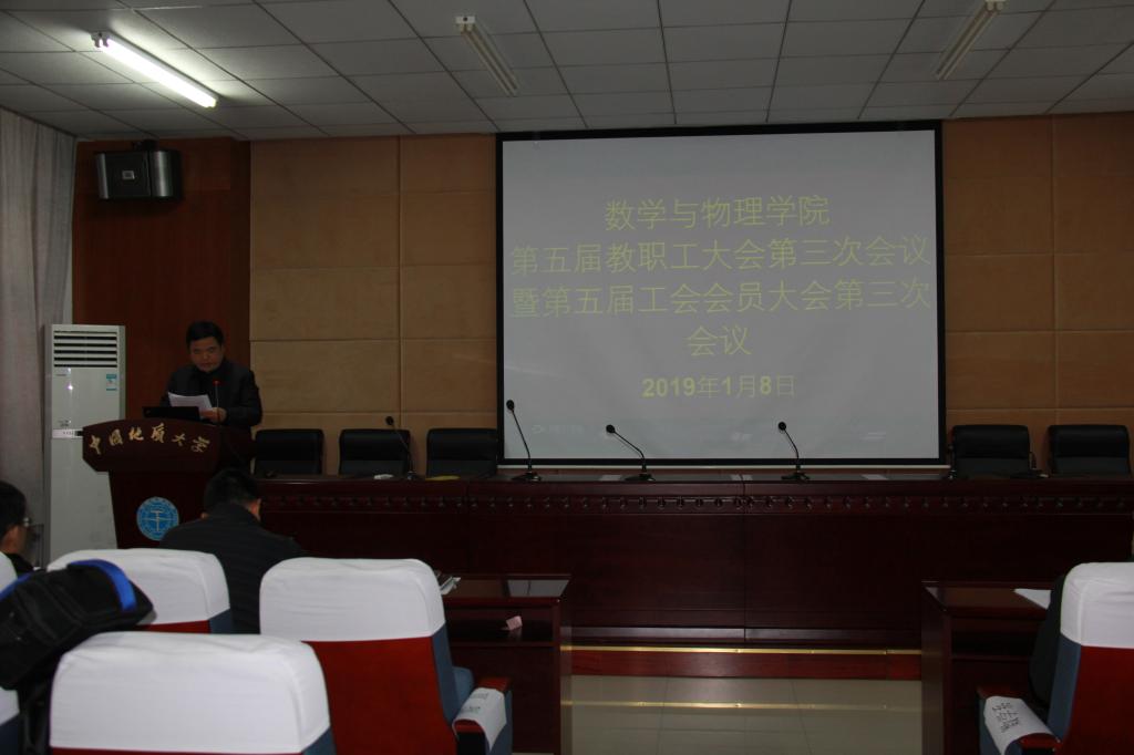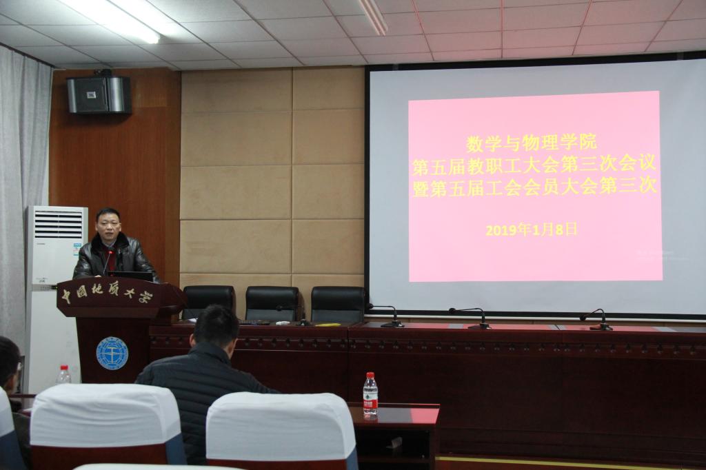 2019年1月8日下午,色小说 第五届教职工大会第三次会议暨工会会员大会第三次会议在学海楼109会议室隆重召开。校党委副书记王林清、校工会常务副主席喻芒清应邀出席大会,学院党政领导及全体教职工参加会议。大会分两阶段进行。