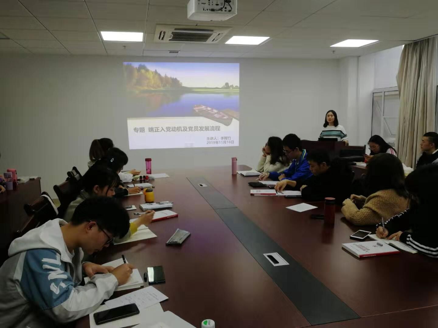 11月16日下午,色小说 第66期入党积极分子培训班第三讲在东区教学综合楼A1505会议室举行。党委组织部李雨竹老师主讲,主题为端正入党动机及党员发展流程。孙宇涛老师主持。